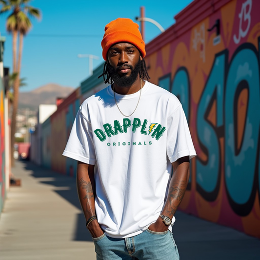 Drapplin Signature White Unisex Oversized Typography Printed T-shirt