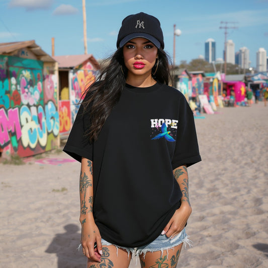 Hope Premium Black Oversized Off shoulder Printed T-shirt