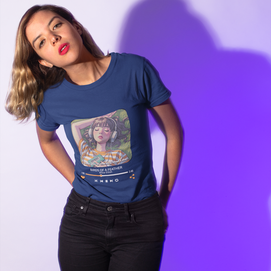 Birds Of Feather Navy Blue Woman Regular Fit Printed T-shirt