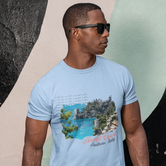 Amalfi Coast Baby Blue Crew Neck Graphic Printed T-shirt