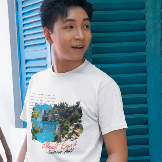 Amalfi Coast White Crew Neck Graphic Printed T-shirt