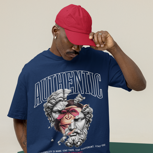 Authentic Premium Navy Blue Oversized Printed T-shirt