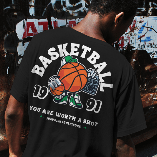 Basketball Premium Black Oversized Typography Back Printed T-shirt