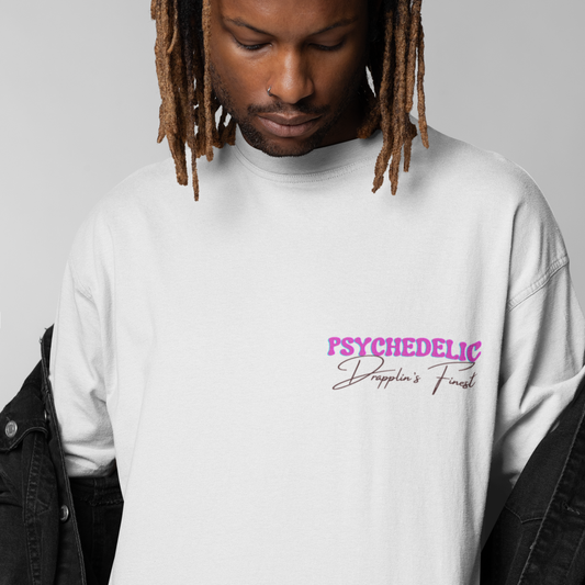 Psychedelic Premium White Oversized Typography Back Printed T-shirt