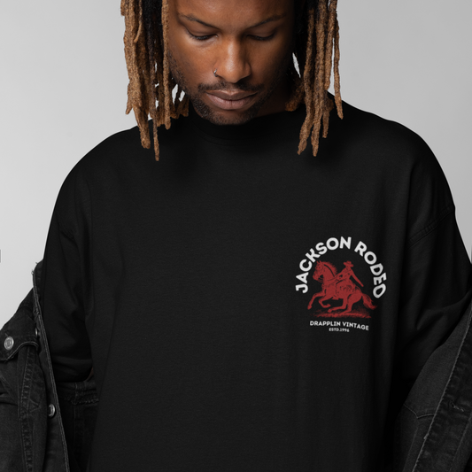Rodeo Premium Black Oversized Back Printed T-shirt