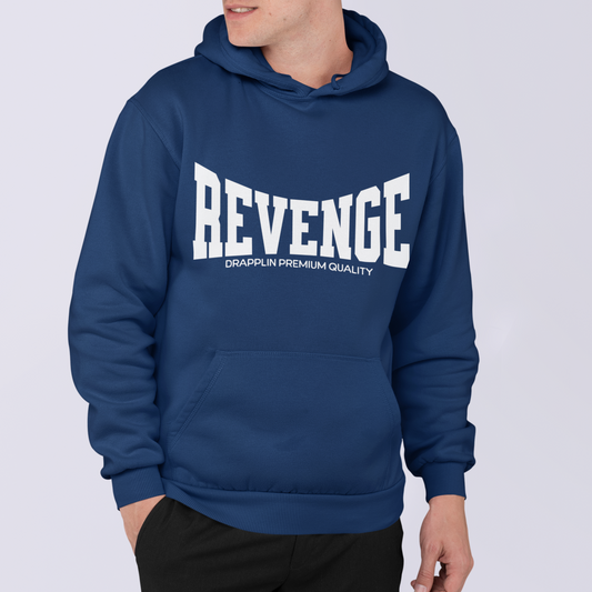 Revenge Navy Blue Regular Typographic Printed Hoodie