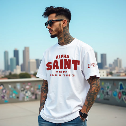 Saint Unisex White Premium Oversized Typographic Printed T-shirt