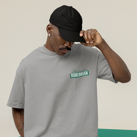 Unknown Bohemian Premium Grey Mélange Oversized Typography Back Printed T-shirt