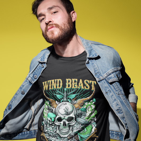 Wind Beast Black Crew Neck Graphic Printed T-shirt