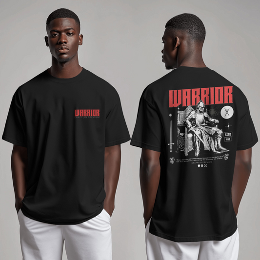 Warrior Premium Black Oversized Typography Back Printed T-shirt