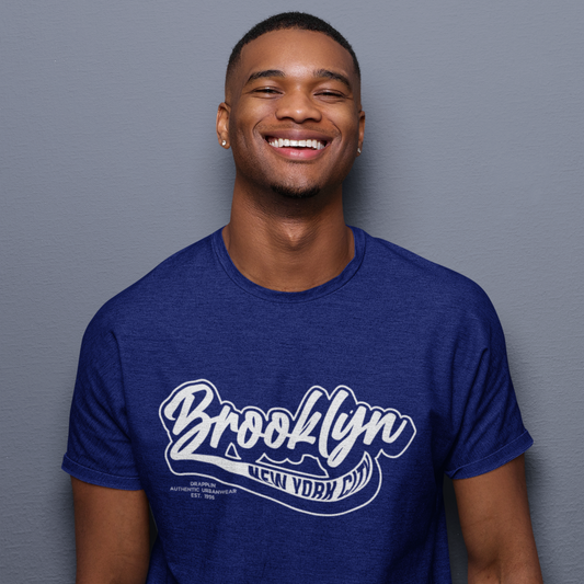Brooklyn Royal Blue Typographic Crew Neck Graphic Printed T-shirt