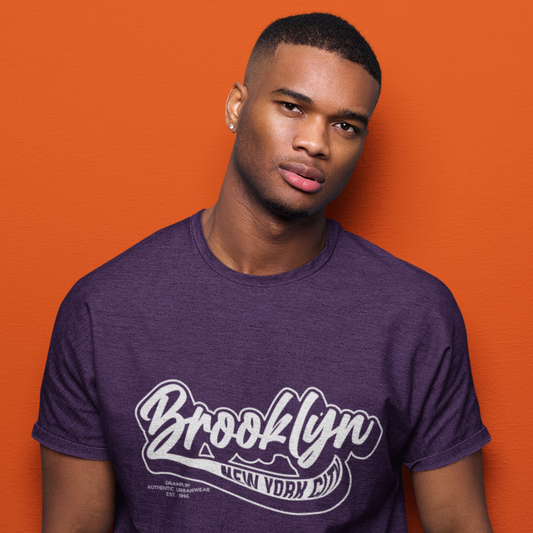 Brooklyn Purple Typographic Crew Neck Graphic Printed T-shirt