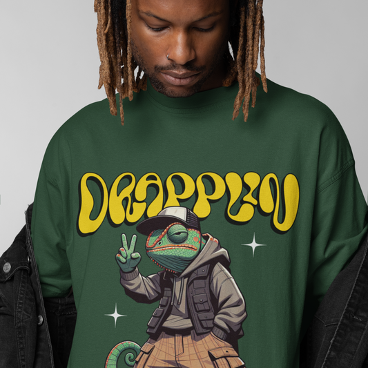 Drapplin Chameleon Premium Forest Green Oversized Printed T-shirt