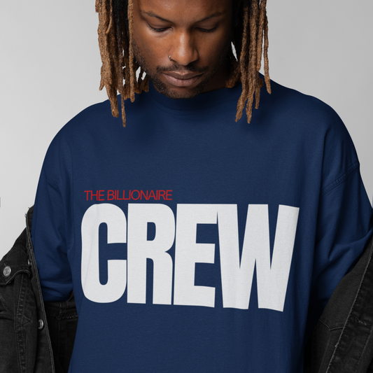 Crew Premium Navy Blue Oversized Typography Back Printed T-shirt