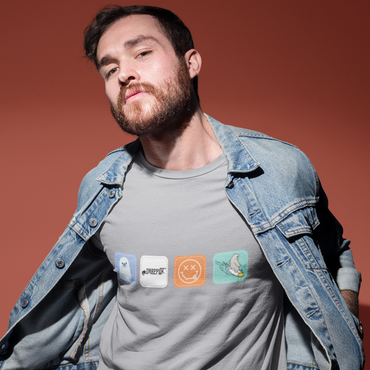 Drapplin Boxes Steel Grey Crew Neck Graphic Printed T-shirt