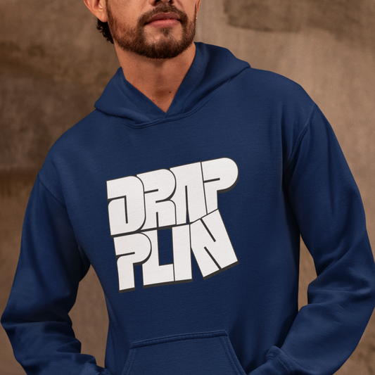 Drapplin Navy Blue Regular Typographic Printed Hoodie