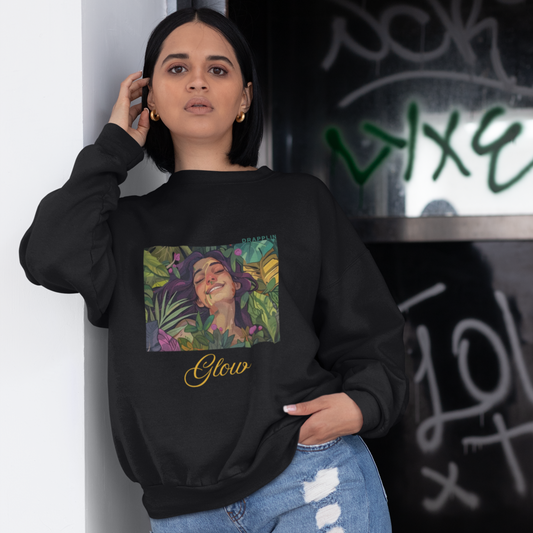 Glow Black Woman Regular Typographic Printed Sweatshirt