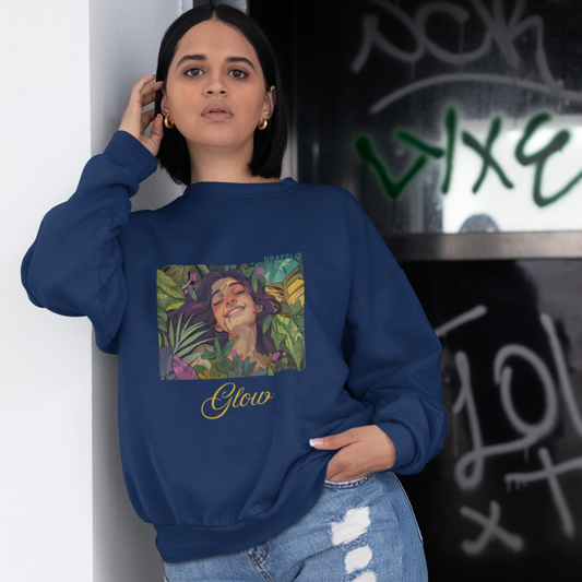 Glow Navy Blue Woman Regular Typographic Printed Sweatshirt