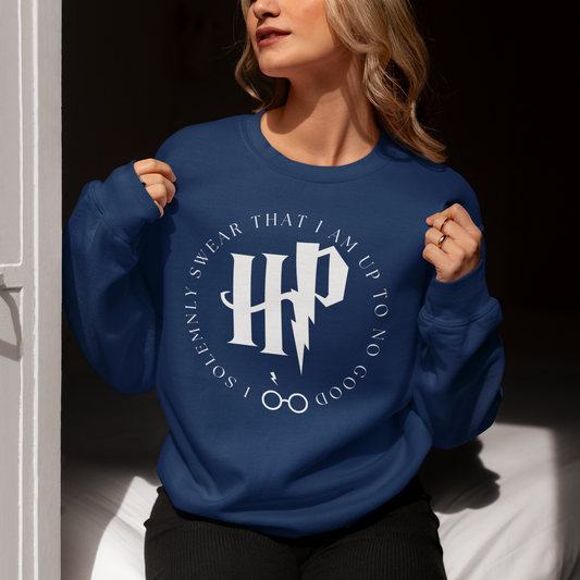 Harry Potter Navy Blue Woman Regular Typographic Printed Sweatshirt