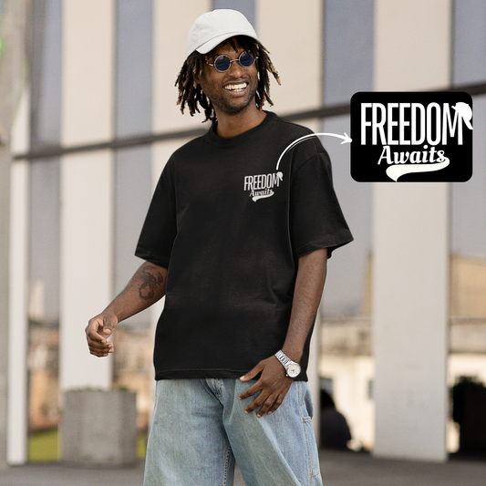 Freedom Awaits Premium Black Oversized Typography Back Printed T-shirt