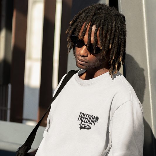 Freedom Awaits Premium White Oversized Typography Back Printed T-shirt