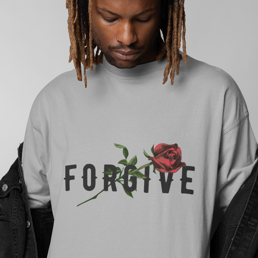 Forgive Premium Grey Mélange Oversized Typography Back Printed T-shirt