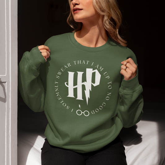 Harry Potter Olive Green Woman Regular Typographic Printed Sweatshirt