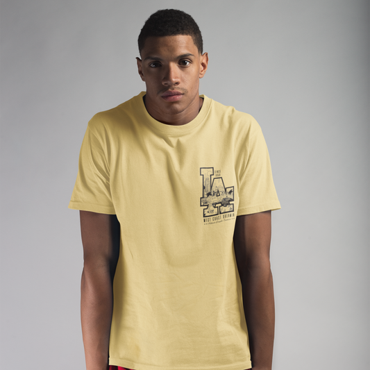 LA Beige Crew Neck Graphic Printed T-shirt