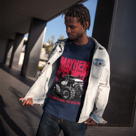 Mayhem Premium Navy Blue Oversized Printed T-shirt