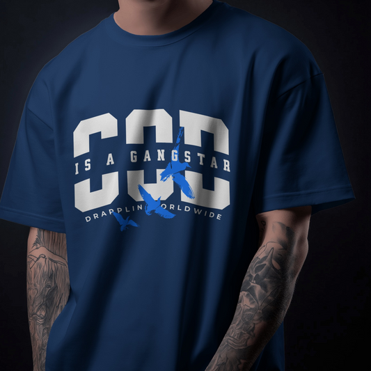 God Gangster Premium Navy Blue Oversized Typography Printed T-shirt
