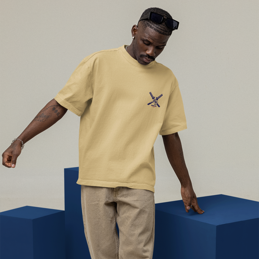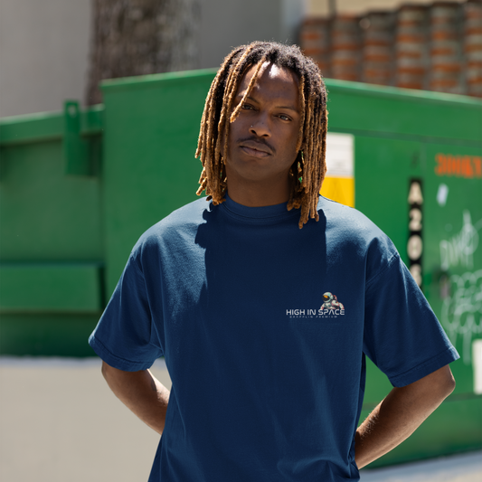 Space Premium Navy Blue Oversized Typography Back Printed T-shirt