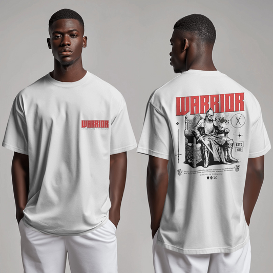 Warrior Premium White Oversized Typography Back Printed T-shirt