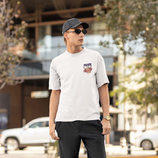 Drapplin Signature White Unisex Oversized Typography Printed T-shirt