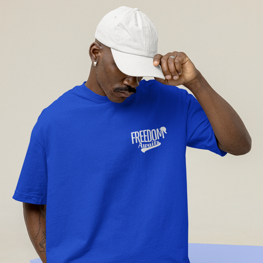 Freedom Awaits Premium Royal Blue Oversized Typography Back Printed T-shirt