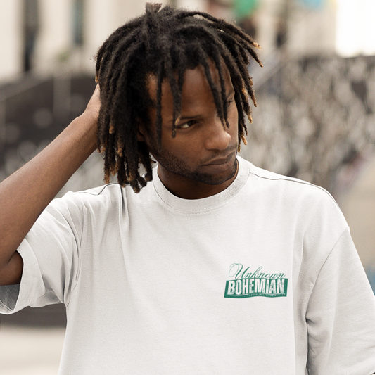 Unknown Bohemian Premium White Oversized Typography Back Printed T-shirt