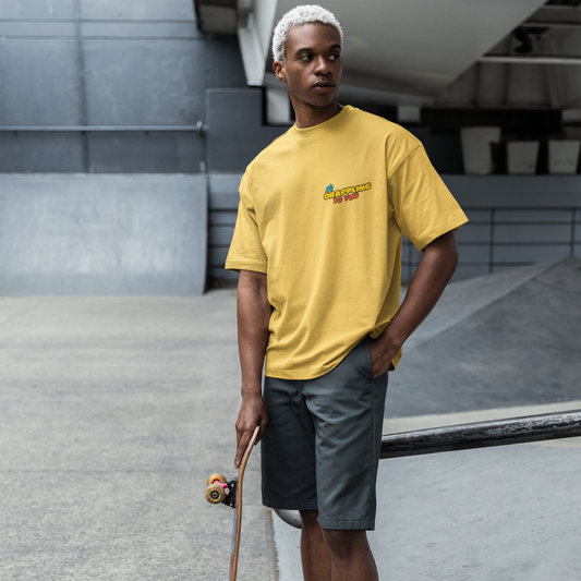 Drapplin To You Premium Mustard Yellow Oversized Typography Back Printed T-shirt