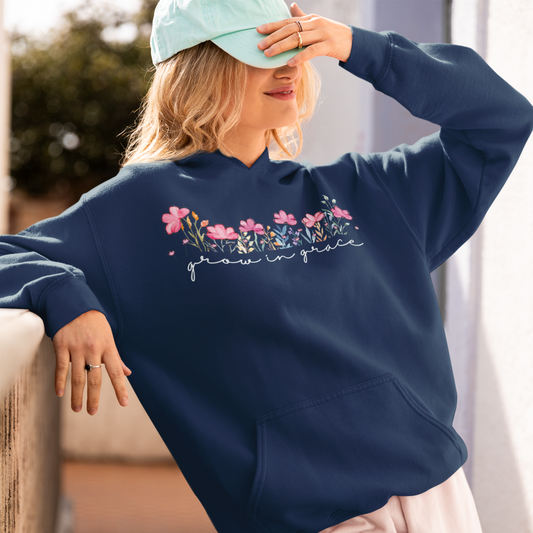 Grow Navy Blue Woman Regular Typographic Printed Hoodie