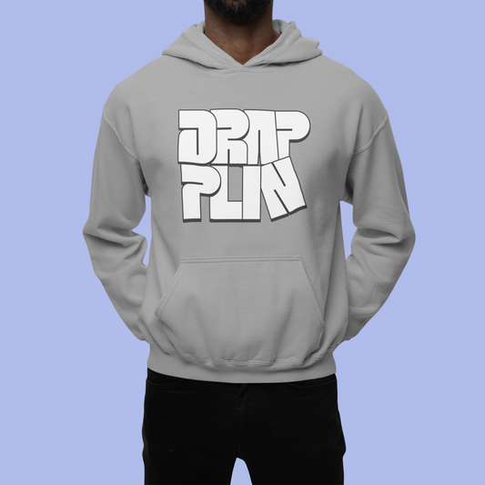 Drapplin Grey Mélange Regular Typographic Printed Hoodie