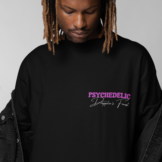 Psychedelic Premium Black Oversized Typography Back Printed T-shirt