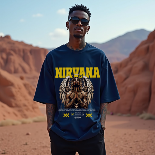 Nirvana Premium Navy Blue Oversized Typography T-shirt