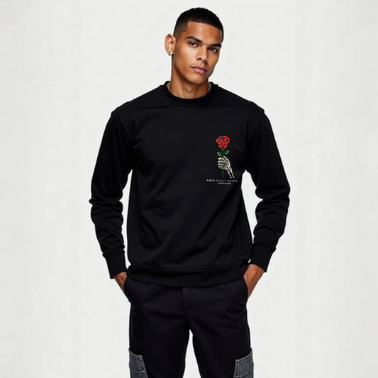 Amor Black Unisex Premium Regular Printed Sweatshirt