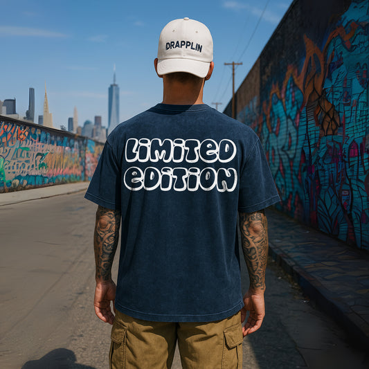 Limited Edition Drapplin Premium Navy Blue Unisex Acid Washed Oversized T-shirt