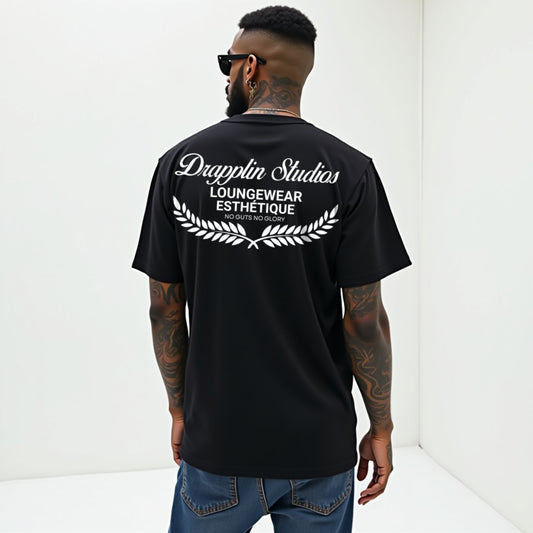 Drapplin Loungewear 280 GSM Unisex Oversized Black Printed T-shirt