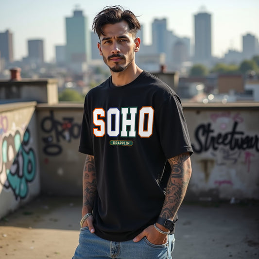 Soho Unisex Black Premium Oversized Typographic Printed T-shirt