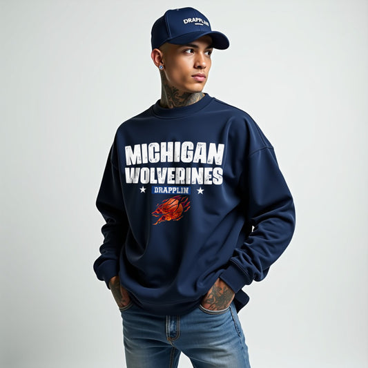 Michigan Unisex Navy Blue Premium Oversized Sweatshirt