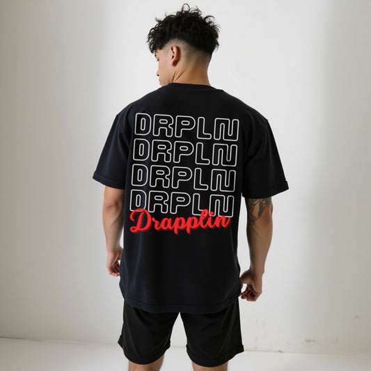 Adapt To Drapplin Black Premium Oversized Printed T-shirt