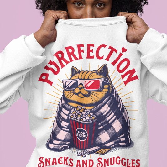 Purrfection White Woman Regular Typographic Printed Sweatshirt