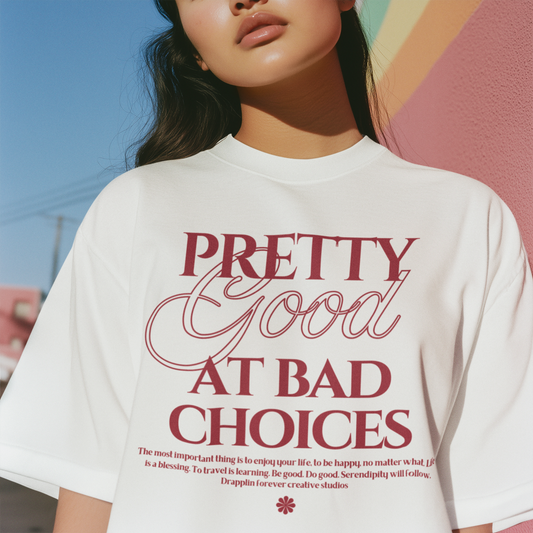 Bad Choices Premium White Woman Oversized Printed T-shirt