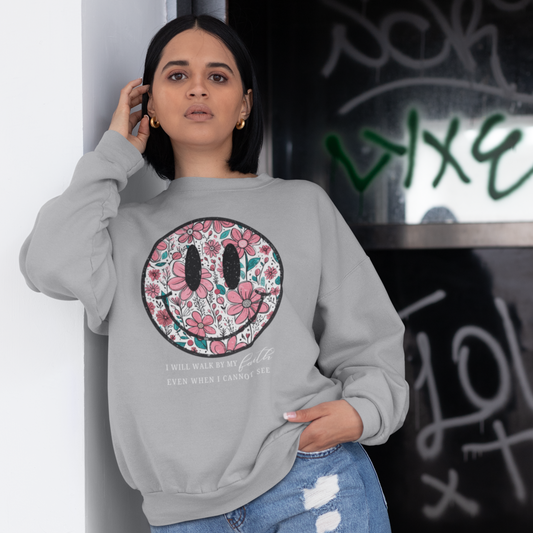 Smiley Grey Mélange Woman Regular Typographic Printed Sweatshirt