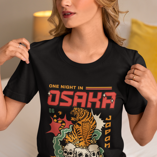 Osaka Unisex Black Relaxed Fit Printed T-shirt